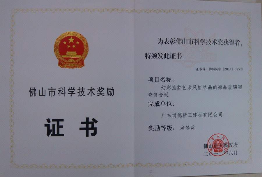 2012年 佛山科学技术奖三等奖-好色先生APP免费下载公司